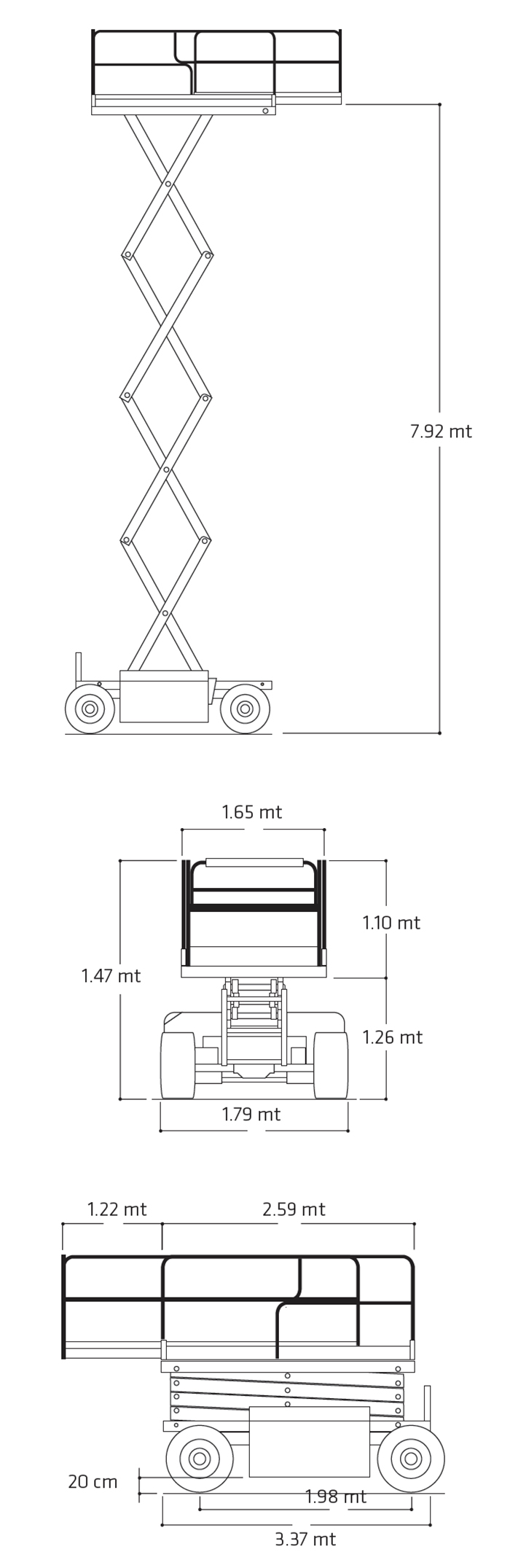 Altezza della piattaforma – Sollevata 7.92 mt