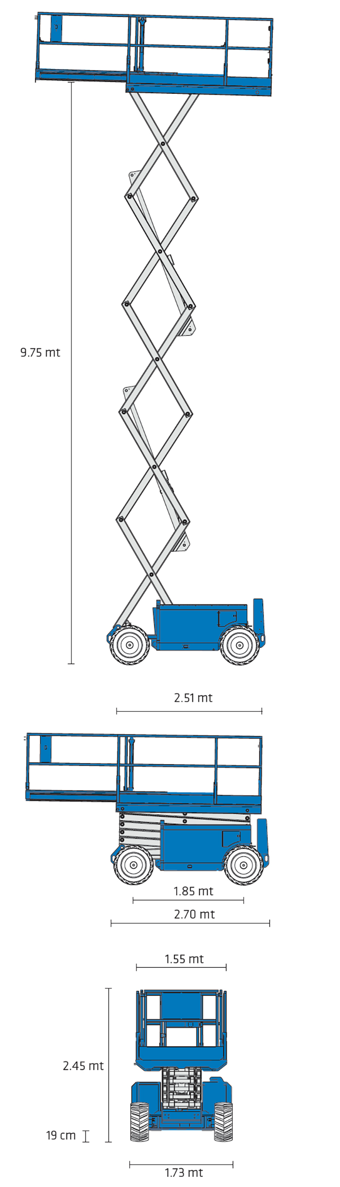 Altezza della piattaforma – Sollevata 9.75 mt