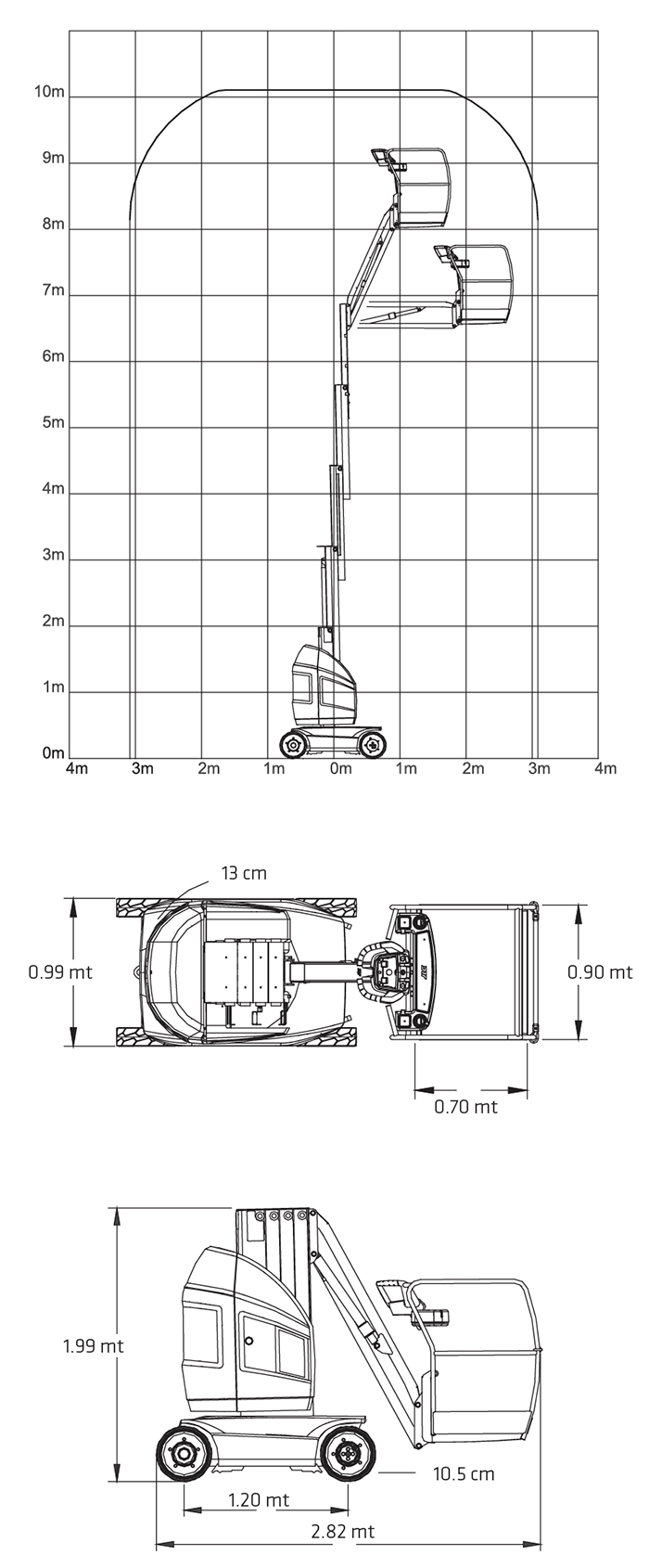 Altezza di lavoro 10.10 mt